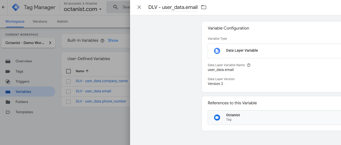 - Fill in Data Layer Variable Name: user_data.email