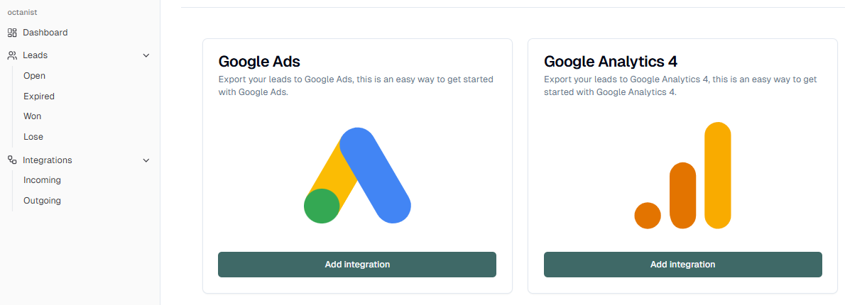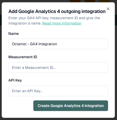Fill in a name for the integration (e.g., Octanist - GA4 Integration).