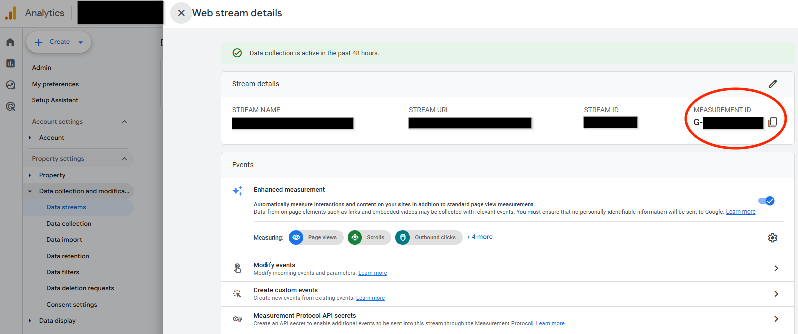 This can be found in your GA4 account under Data Streams. See Google’s guide for details.